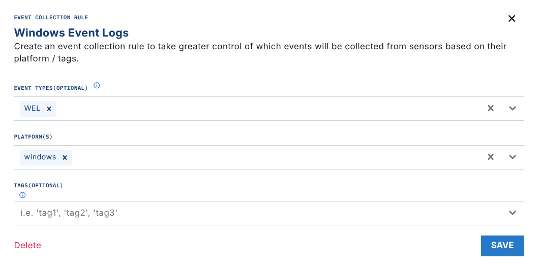 Note: You can use tagging or other filters to narrow down the systems that logs are collected from.