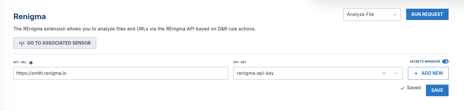 To use the REnigma extension, you will need your REnigma URL and API key. Contact the REnigma team for access.