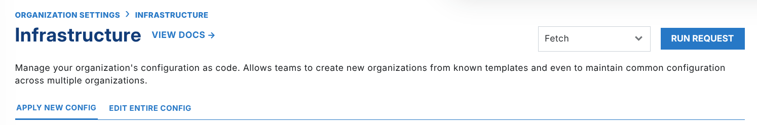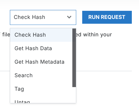 In the top right, any actions (as defined in your request schema) will be displayed as a dropdown and button.